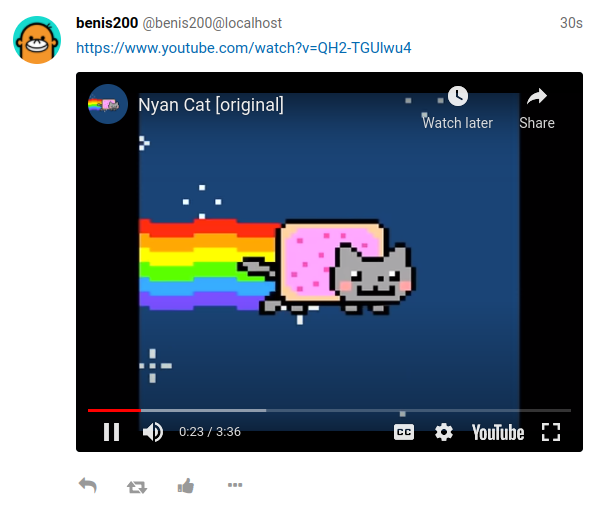 Share a link to a popular video site, and users can watch right from their timeline! The following sites are tested to work: