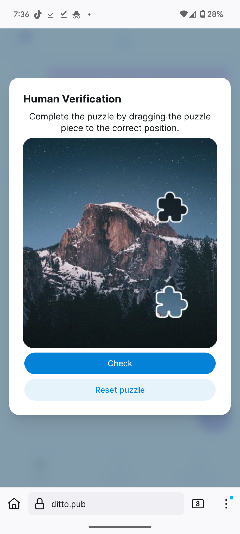 First impressions matter, and we've redesigned the login and registration processes to be more welcoming and user-friendly. New users will encounter an intuitive onboarding flow presented in a modal. To bolster security and combat spam on Ditto's relay, we've developed a custom captcha. New members will need to drag a puzzle piece into the correct position upon joining, ensuring a seamless yet secure entry.