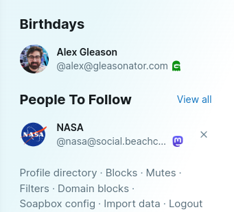 In this release, we have restored compatibility with Mastodon. Soapbox is now very flexible, and can adapt to its circumstances. If you run it on Mastodon, Soapbox knows this, and will only display Mastodon features.