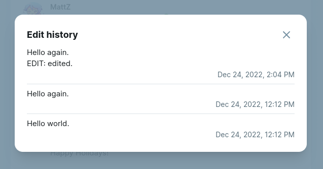 Edited posts will display a pencil icon, and can be clicked to view the full editing history.
