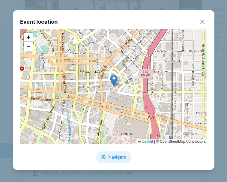 The event location can be viewed on a map right in Soapbox, powered by OpenStreetMap.