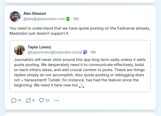 Finally, this important and obvious feature is available. Quote posting is a feature people have come to expect, so a social media experience is simply incomplete without it.