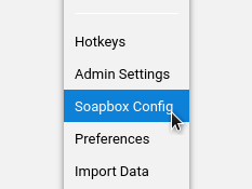 After logging in, click your avatar in the topbar, and navigate to Soapbox Config to customize it. Additional settings can be found under Admin Settings in the same menu.