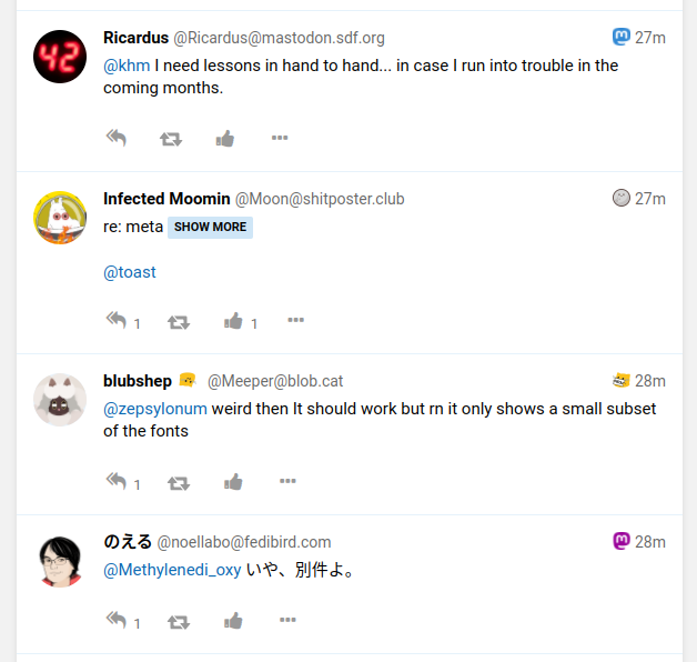 In order to help newcomers understand the Fediverse, instance favicons can be shown next to each post. This feature needs to be enabled in Pleroma settings before it will take effect.