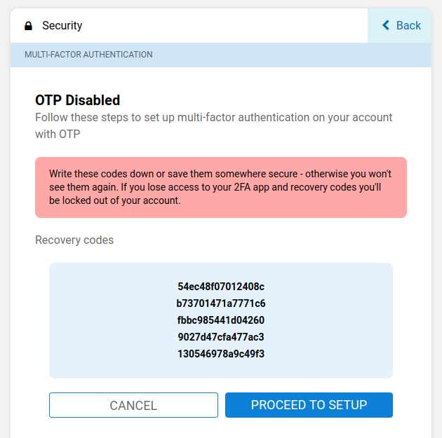 For improved security, users can enable multi-factor auth. After setup, this will prompt them to enter a time-based code from an OTP app on their phone whenever they log in.