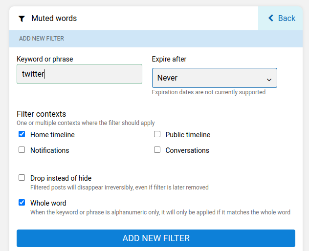 More advanced timeline filtering options now exist, such as filtering out DMs.
