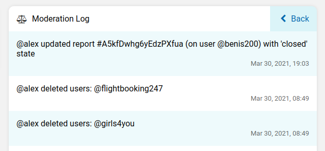 Need to figure out what happened? Review the mod log to see a history of events.