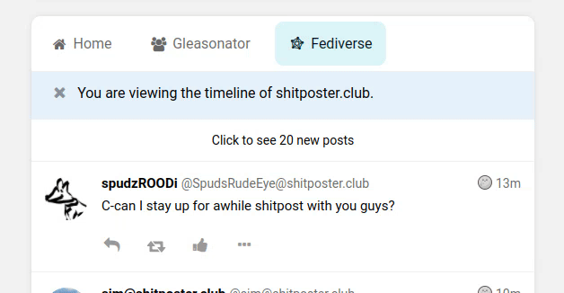 Pleroma is a free and open source, federated, social media software allowing anyone to host their own online community. Servers can cross-communicate with other servers on the network thanks to federation. Soapbox FE is a sleek user interface that server admins can install on top of Pleroma.